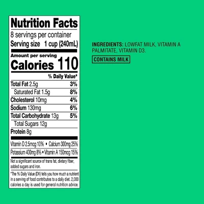 This 1% Low Fat Milk from Good & Gather™ is a must-have in your fridge for making all your favorite recipes or enjoying with homemade cookies. This grade A 1% low fat milk is pasteurized and homogenized, along with having vitamins A and D added. Coming from cows that are not treated with rBST, this milk can be added to your favorite recipes so you and your family can enjoy them while getting protein and calcium. Simply use this 1% low fat milk to make all your favorites — from mac and cheese to scrambled eggs to homemade buttercream frosting.
