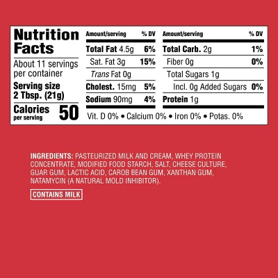 Add an extra little something to your toast or bagel with the Whipped Plain Cream Cheese Spread from Good & Gather™. Made from pasteurized milk and real cream, this creamy cheese spread has no added flavors, preservatives or synthetic colors. It features the classic plain flavor that goes with a variety of pairings, while the whipped texture makes it extra fluffy and easy to spread. Spread it on a toasted bagel or serve it alongside your favorite crackers, pretzels or crudites to enhance their flavor.